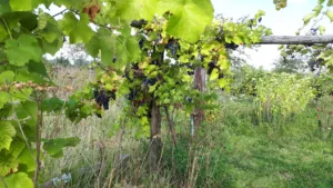 Druiven kan je op verschillende manieren telen. Hier op een raamwerk waar je onderdoor kan lopen.